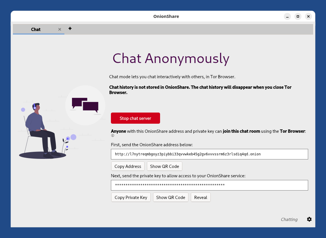 • People with the onion address can enter this chat room from their Tor Browser and chat with you or other people.